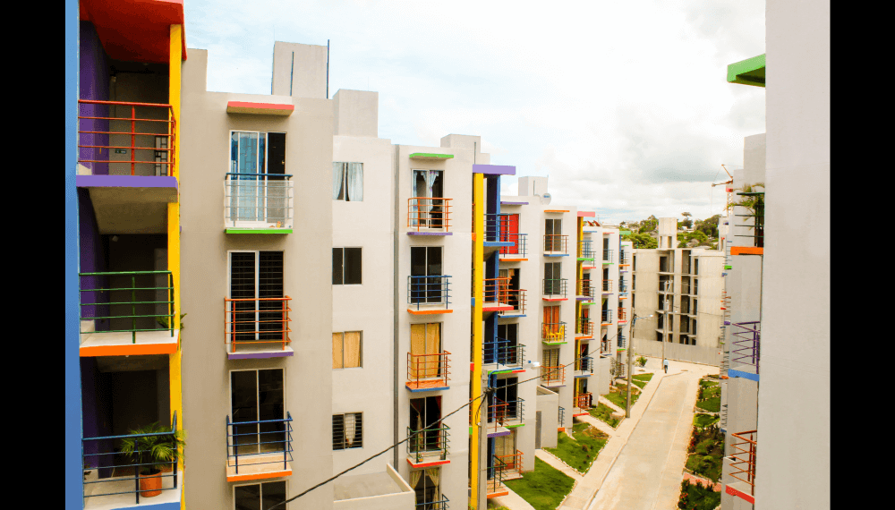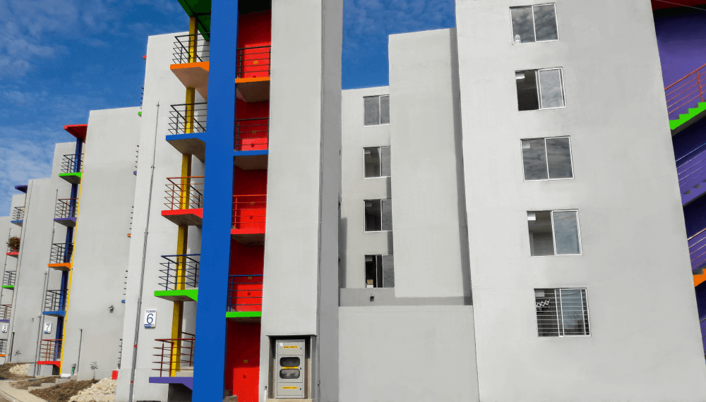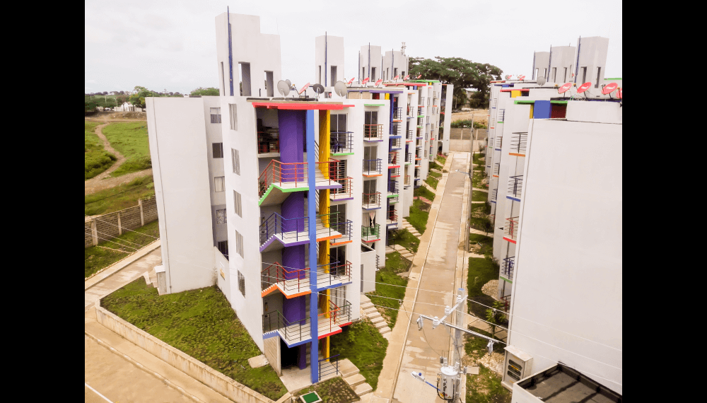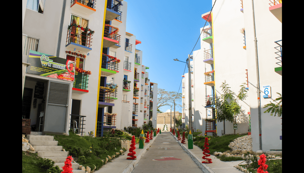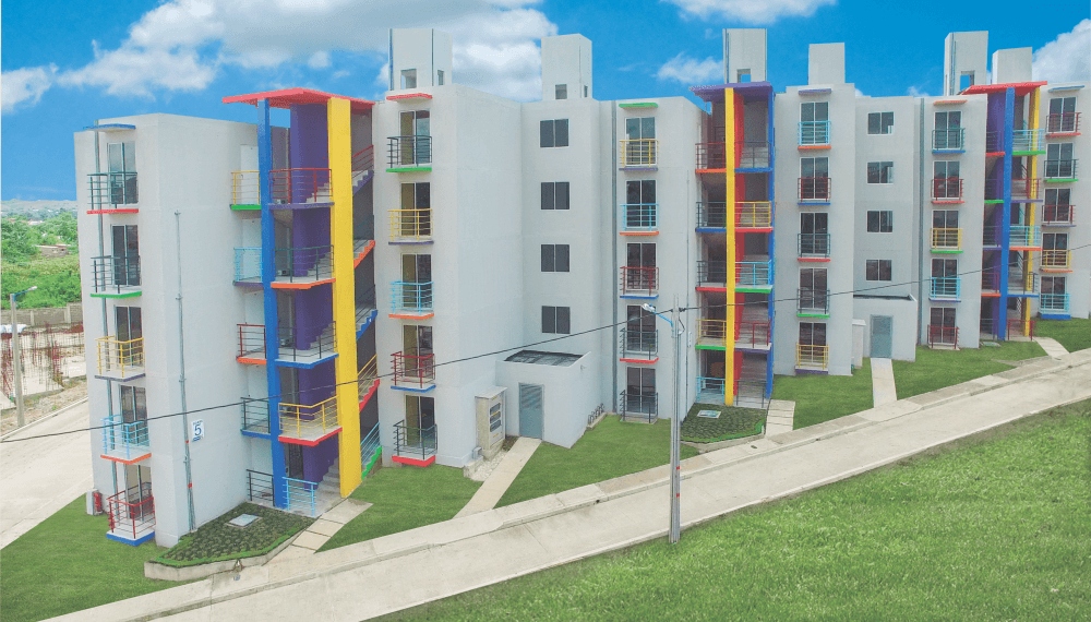 Urbanización LA ARBOLEDA, está conformada por 500 apartamentos de 2 alcobas, de 43,0 M2 cada uno, distribuidos en 50 torres de cinco pisos cada una, con dos apartamentos por piso.