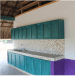 El planteamiento arquitectónico contempla una escalera en estructura metálica y peldaños en madera y carpintería en madera de roble, acabado en color verde turquesa y muros allanados con zócalo color uva, identidad de la vivienda.
