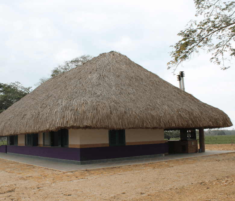 El planteamiento arquitectónico se fundamenta en el análisis de la tipología predominante de la vivienda campesina de la zona rural en la cual se emplaza. A partir de allí se propone una edificación de un piso y mezzanine, con diseño geométrico ortogonal y una cubierta a cuatro aguas en palma amarga, material predominante en la vivienda vernácula de la zona, logrando integración armónica con el paisaje.